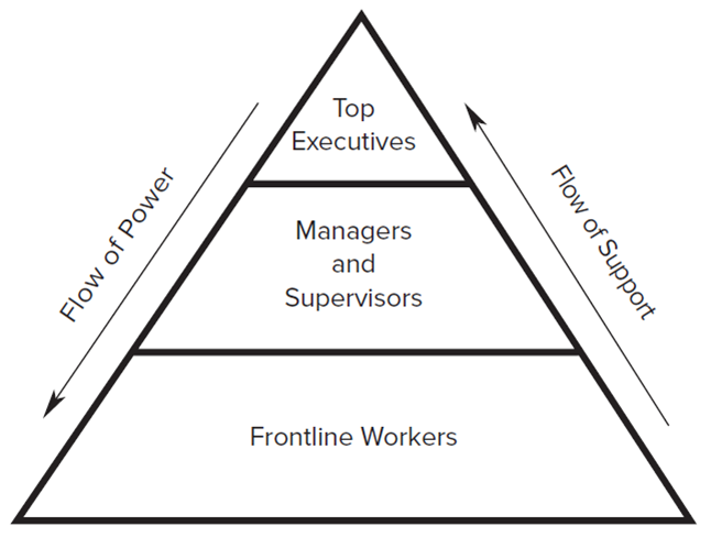 •In an organizational pyramid, workers support managers and supervisors who in turn support executives