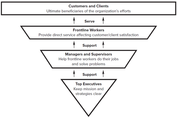 There is upside-down pyramid approach of servant leadership: